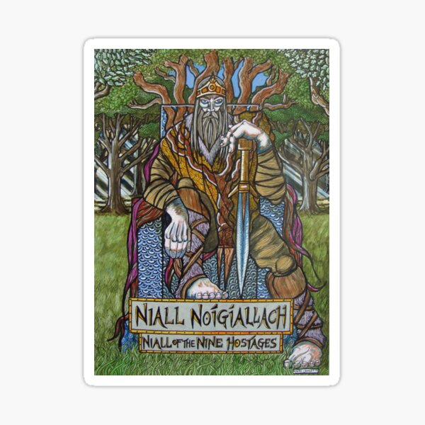 Niall Noígíallach (pronounced [ˈn͈ʲiːal͈ n͈oiˈɣʲiːal͈əx]; Old Irish "having nine hostages"), or Niall of the Nine Hostages, was a legendary, semi-historical Irish king who was the ancestor of the Uí Néill dynasties that dominated Ireland from the 6th to the 10th centuries. Historical Irish annalistic and chronicle sources place his reign in the late 4th and early 5th centuries, although modern scholars date him about half a century later.